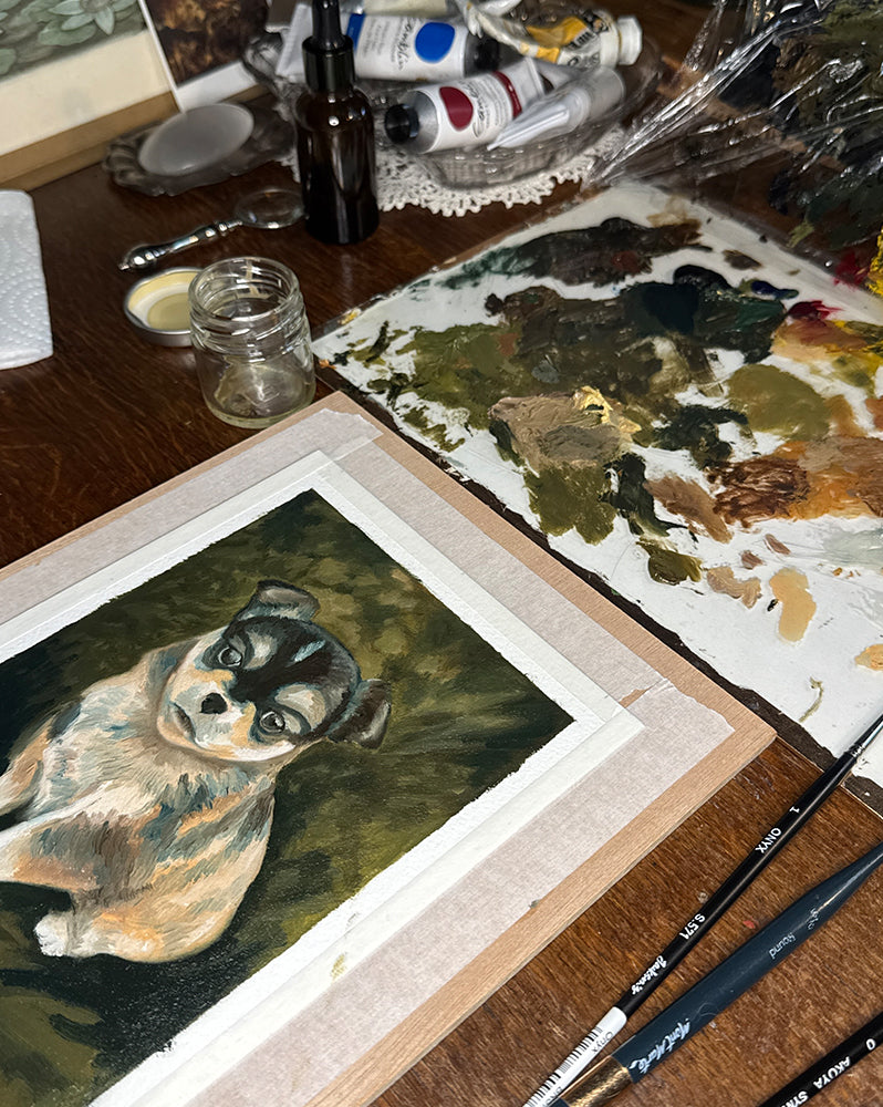From my studio in the Lake District, I create bespoke pet portraits for those who see their pets as family. Each piece is carefully crafted to capture not just a likeness, but the personality, spirit, and quirks that make your companion unique.